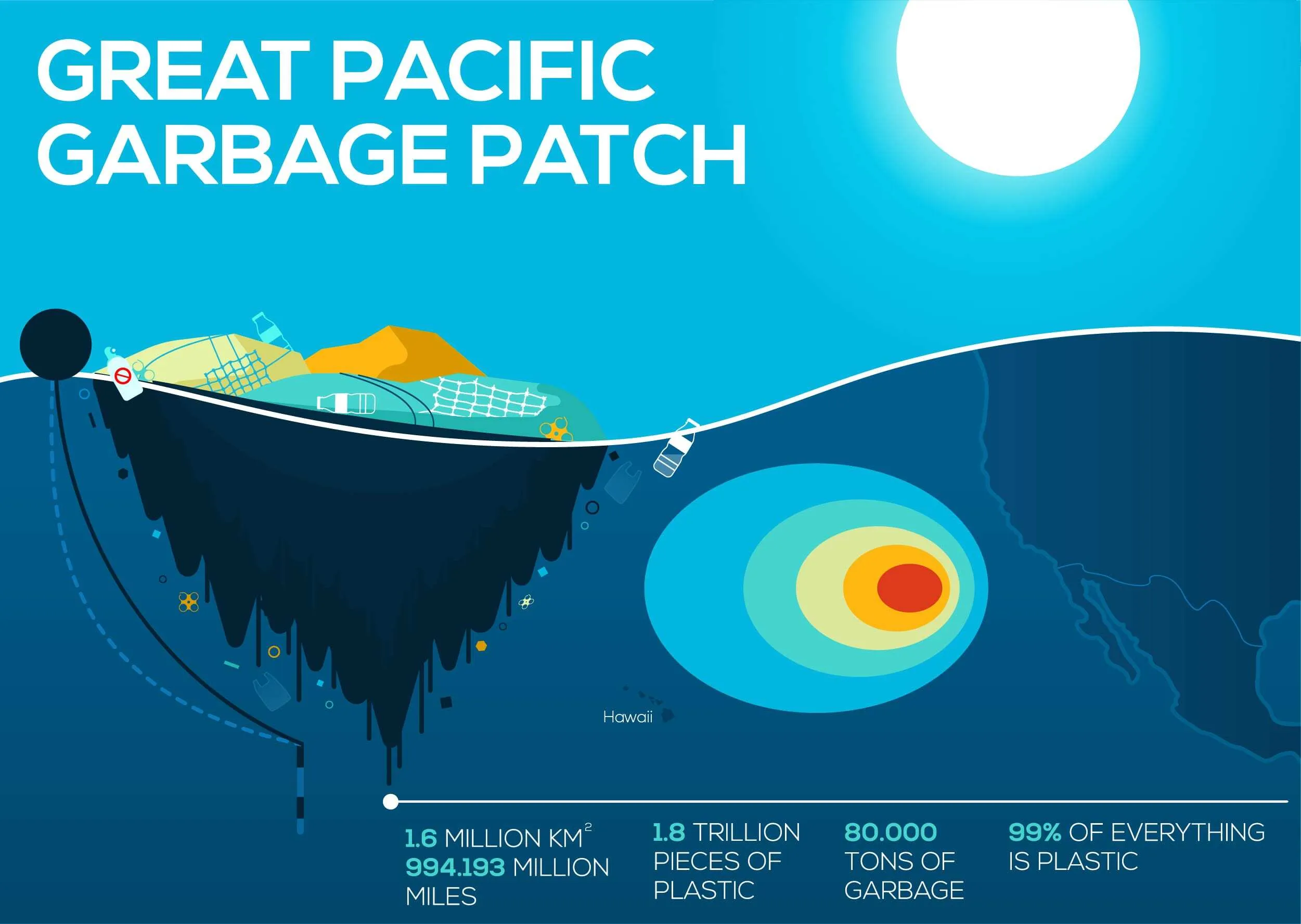 Collecting between Hawaii and California is a mass known as the Great Pacific Garbage Patch—the largest accumulation of ocean plastic in the world. Three times the size of France, it poses a threat to wildlife, such as fish or sea turtles that ingest it or become trapped. A 2019 study detected microplastics in over 72 percent of the amphipods collected from the six deep sea trenches around the Pacific Rim, and an American explorer found a plastic bag and candy wrappers in that same year in the Mariana Trench, the deepest point on Earth at nearly seven miles underwater.