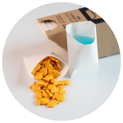 Try this: Replace plastic sachets with recyclable paper pouches or test how your product works with fiber-based packaging. Bonus: JBM can help fill and assemble your product samples to meet quick deadlines.Example: ECOS needed a lightweight packaging solution for its sustainable dryer sheet samples to distribute to tradeshow attendees. JBM developed an open-ended pouch with a water-based latex closure that perfectly fit the sample product.