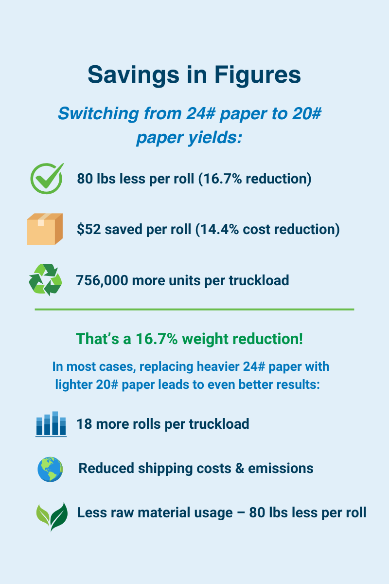 - Manufacturing Constraints: Some packaging machines may not handle thinner paper and will ultimately slow down production speeds, increase scrap rates or require significant adjustments that make lightweighting infeasible.
